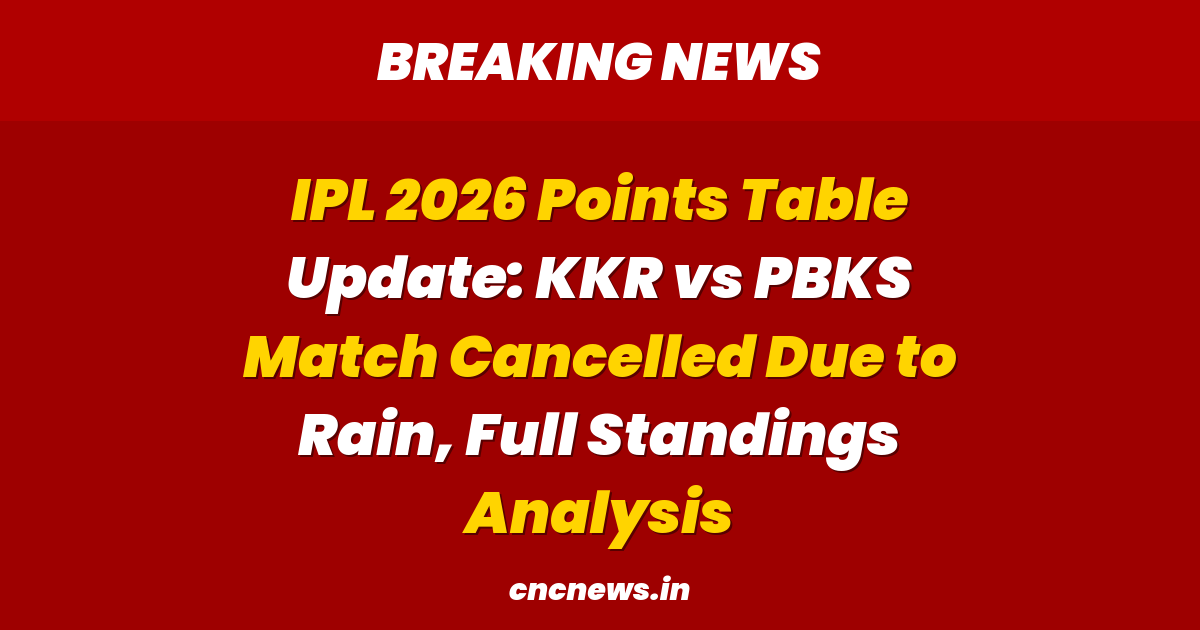 The rain-affected KKR vs PBKS match played a crucial role in reshaping the IPL 2026 standings. Punjab Kings moved to the top position with 5 points, while Kolkata Knight Riders opened their account with 1 point.